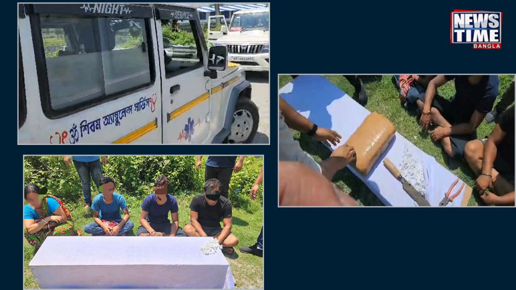 পুলিশের নজর এড়াতে অ্যাম্বুলেন্সের ভেতরে মৃতদেহের জন্য ব্যবহৃত কফিনের ভেতরে ঢুকিয়ে গাঁজা পাচারের ছক বানচাল করল রাজ্য পুলিশের স্পেশাল টাস্ক ফোর্সের(এসটিএফ) আধিকারিকেরা । মঙ্গলবার ফুলবাড়ি এলাকায় অ্যাম্বুলেন্সে কফিনের ভেতরে থাকা ৬৪কেজি গাঁজা বাজেয়াপ্ত করার পাশাপাশি এক মহিলা সহ চার পাচারকারীকে গ্রেফতার করল এসটিএফ ।