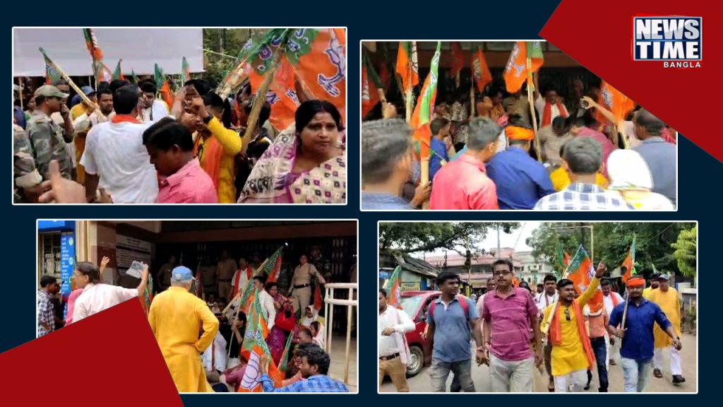 তৃণমূল আশ্রিত দুষ্কৃতীরা মনোনয়নপত্র জমা দিতে বাধা দিচ্ছে । এমনটাই অভিযোগ তুলেছে বিজেপি । তাই এই ঘটনার প্রতিবাদে বাঁকুড়ার বিষ্ণুপুর মহকুমাশাসকের দফতরের সামনে অবস্থান বিক্ষোভে বসে বিজেপি । শনিবার শহরে মিছিল করে মহকুমাশাসকের দফতরের সামনে বসে পড়েন বিজেপির নেতা কর্মীরা ।