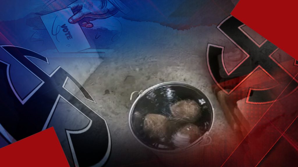 সোমবার সকালে বারাসত ১ নম্বর ব্লকের পূর্ব খিলকাপুর পঞ্চায়েতে বাপপুর গ্রামে নিম্ন বুনিয়াদী স্কুলের ৫১ ও ৫২ নম্বর বুথের বিপরীতে রাস্তার ধারে একটি দোকানের পাশ থেকে চারটি তাজা বোমা উদ্ধার করা হয় । দত্তপুকুর থানার পুলিশ ঘটনাস্থলে এসে বোমা চারটি উদ্ধার করে নিয়ে যায় ।