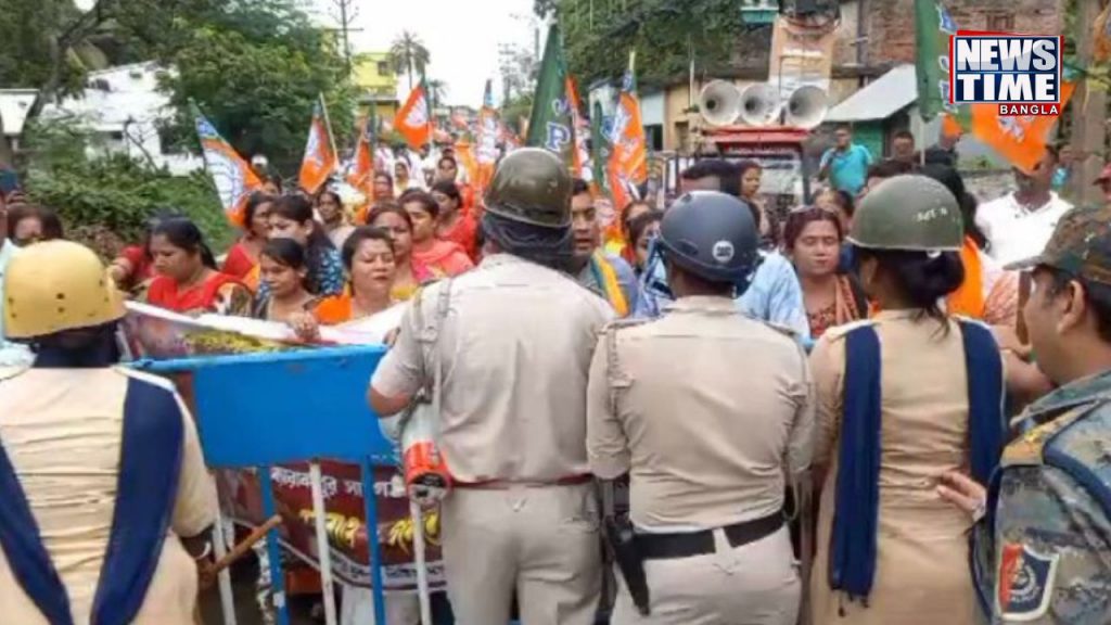 বিক্ষোভ কর্মসূচিতে উপস্থিত ছিলেন পশ্চিমবঙ্গ বিজেপি মহিলা মোর্চা রাজ্য সভানেত্রী ফাল্গুনী পাত্র, বিজেপি ব্যারাকপুর সংগঠনিক জেলা সভাপতি সন্দীপ বন্দ্যোপাধ্যায় ও বিজেপি ব্যারাকপুর সাংগঠনিক জেলা মহিলা মোর্চার সভানেত্রী পিয়ালী দুবে । এই দিনের কর্মসূচি ঘিরে পুলিশের সঙ্গে ধস্তাধস্তি শুরু হয় বিজেপি কর্মীদের সঙ্গে । যার জেরে চরমে ওঠে উত্তেজনা ।
