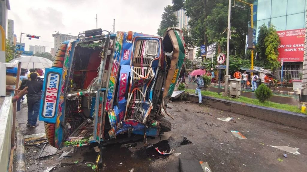 গান্ধী জয়ন্তী হওয়ায় সোমবারের সকালের রাস্তা প্রায় ফাঁকাই ছিল । এই পরিস্থিতিতে তীব্র গতিতেই ছুটে আসছিল বেসরকারি বাসটি । অন্যদিকে “ওয়ান ওয়ে” দিয়ে ভুলভাবে ধেয়ে আসে একটি গাড়ি । সজোরে ধাক্কা মারে বাসের গায়ে । নিয়ন্ত্রণ হারিয়ে বাসটি সামনের ডিভাইডারে ধাক্কা মেরেই উল্টে যায় । বাসে ধাক্কা মারায় ক্ষতিগ্রস্ত হয় গাড়িটিও ।