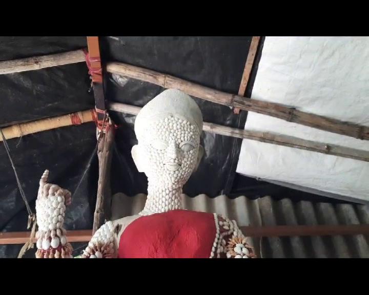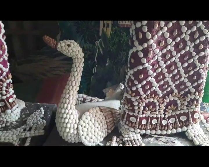 এবার সামুদ্রিক ঝিনুকের তৈরি মূর্তি ও মণ্ডপসজ্জায় দর্শনার্থীদের নজর কাড়বে পুরুলিয়া শহরের তেলকল পাড়া সার্বজনীন দূর্গা পুজো ।প্রায় সাড়ে তিন কুইন্টাল সামুদ্রিক ঝিনুক ব্যবহার করে তৈরি হচ্ছে এখানকার মূর্তি ও মণ্ডপ ।