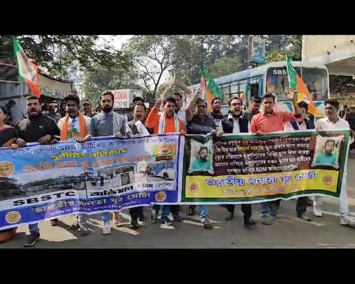 ‘দক্ষিণবঙ্গ রাষ্ট্রীয় পরিবহন সংস্থার বাস চলছে বৈধ কাগজপত্র ছাড়াই; হচ্ছে কোটি কোটি টাকার দুর্নীতিও । দুর্ঘটনা হলে যাত্রীদের নিরাপত্তা কে দেবে!’- এমনই অভিযোগ তুলে বৃহস্পতিবার দুর্গাপুরের সিটি সেন্টারের দক্ষিণবঙ্গ রাষ্ট্রীয় পরিবহন সংস্থার স্ট্যান্ডে দক্ষিণবঙ্গ রাষ্ট্রীয় পরিবহন সংস্থার বাস আটকে বিক্ষোভ দেখাল বিজেপি ।
