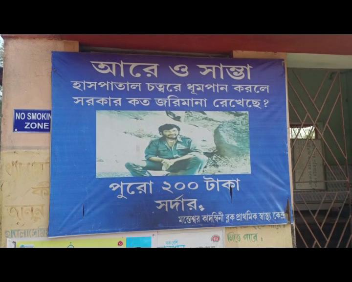 হাসপাতাল চত্ত্বর জুড়ে হিন্দি ফিল্মের ছবি ও ডায়লগ । উদ্দেশ্য একটাই : ধূমপান বন্ধ করা । অভিনব উদ্যোগ নিল পূর্ব বর্ধমানের মন্তেশ্বর ব্লক কাদম্বিনী প্রাথমিক স্বাস্থ্য কেন্দ্র ।