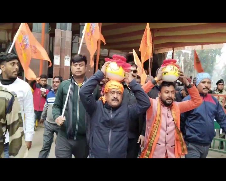 এদিন উত্তর ২৪ পরগণার পেট্রাপোল সীমান্তের জিরো পয়েন্টে বাংলাদেশ জাতীয় হিন্দু মহা জোটের যশোর জেলার সভাপতির হাতে চাল এবং প্রসাদের কলসি তুলে দিলেন বনগাঁ উত্তরের বিজেপি বিধায়ক অশোক কীর্তনীয়া । এদিন তাঁর সঙ্গে ছিলেন রাম ভক্তরা ।