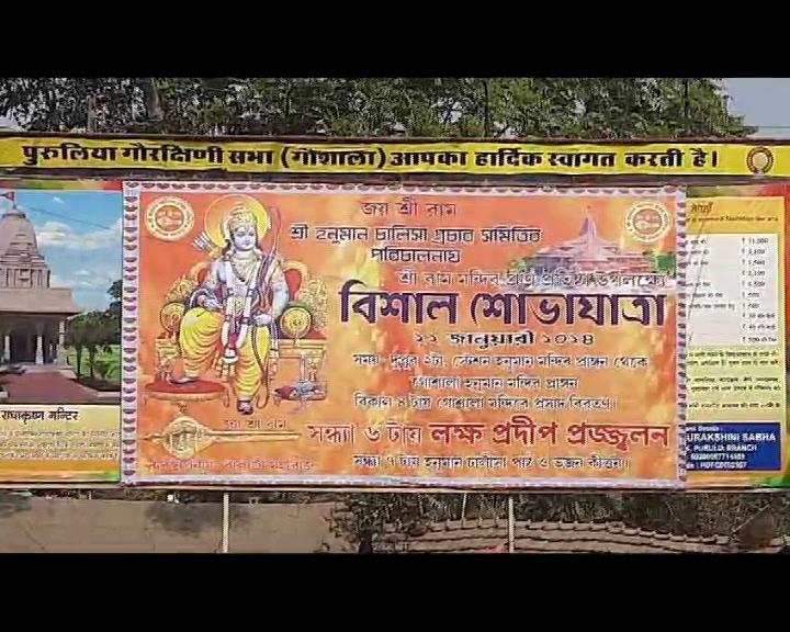 অযোধ্যায় রাম মন্দির এবং রামলালার প্রাণ প্রতিষ্ঠার দিন উৎসবের রূপ নিতে চলেছে পুরুলিয়া শহর । স্থানীয় বাসিন্দারা জানান, ওই দিন পুরুলিয়া শহরের গোশালা হনুমান মন্দির প্রাঙ্গনে অনুষ্ঠিত হবে বিশেষ পুজো । সন্ধ্যে হতেই জ্বালানো হবে এক লক্ষ প্রদীপ ।