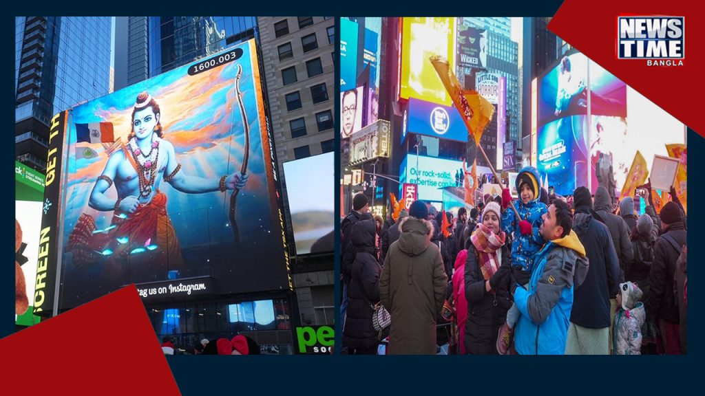 নিউ ইয়র্কের জমজমাট এলাকার মধ্যে টাইমস স্কোয়ার অন্যতম। সেখানেই রামমন্দিরের উদ্বোধনী অনুষ্ঠান উপলক্ষে ভিড় জমিয়েছেন নিউ ইয়র্কের হিন্দু নাগরিকেরা। চতুর্দিকে ‘জয় শ্রীরাম’ ধ্বনি। চলছে মিষ্টি বিতরণও। পোস্টারের পাশাপাশি, হাতে পতাকা নিয়েও রাস্তায় নেমে পড়েছেন অনেকেই।