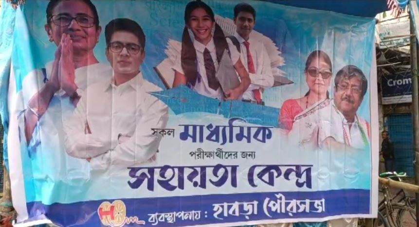 হাবড়া পুরসভার তরফে মাধ্যমিক পরীক্ষার্থীদের সহায়তা কেন্দ্রে বড় করে ছবি রয়েছে অভিষেক ব্যানার্জির , এছাড়া ব্যানারে রয়েছে মুখ্যমন্ত্রী মমতা বন্দ্যোপাধ্যায় ,সাংসদ কাকলি ঘোষ দস্তিদার ও হাবড়ার বিধায়ক জেলবন্দী জ্যোতিপ্রিয় মল্লিকের ছবি ।