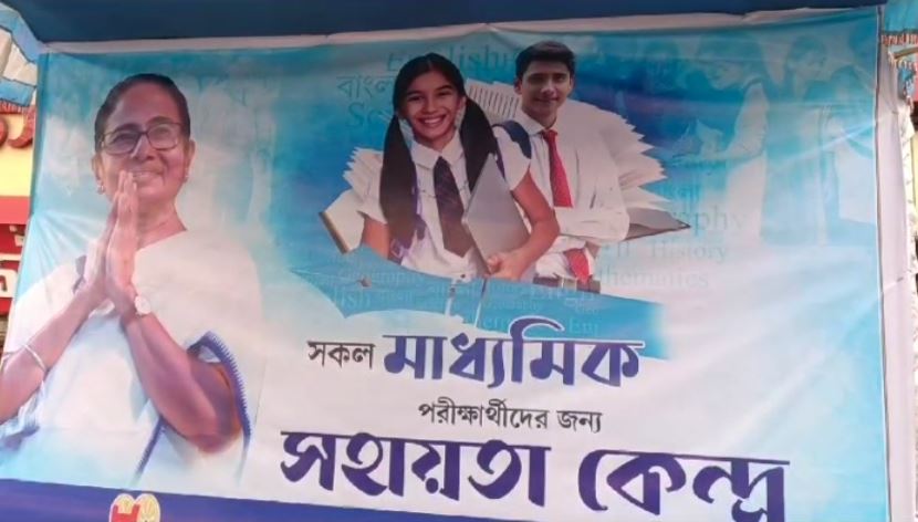 শুক্রবার থেকে মাধ্যমিক পরীক্ষা শুরু হয়েছে। হাবড়া পুরসভার তরফে পরীক্ষা কেন্দ্র গুলোর পাশে অভিভাবকদের জন্য টেন্ট করা হয়েছে, এছাড়া হাবড়া যশোর রোডের পাশে সহায়তা কেন্দ্র তৈরি করা হয়েছে পুরসভার তরফে, যেখানে বড় বড় ব্যানারে মমতা বন্দ্যোপাধ্যায় ছাড়াও অভিষেক বন্দ্যোপাধ্যায়, কাকলি ঘোষ দস্তিদার ও জ্যোতিপ্রিয় মল্লিকের ছবি ।যা নিয়ে বিরোধীরা প্রশ্ন তুলতে শুরু করেছিল।