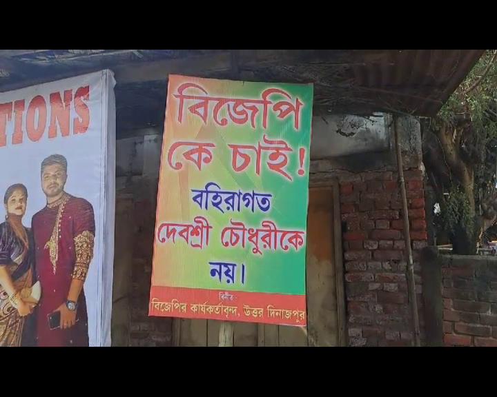 এবার সরাসরি দেবশ্রী চৌধুরীকে “বহিরাগত” বলা হয়েছে সেই পোস্টারগুলিতে । “বিজেপিকে চাই, বহিরাগত দেবশ্রী চৌধুরীকে নয়” বলে উল্লেখ করে বিজেপিরই কার্যকর্তাদের তরফে এই পোস্টার বলে উল্লেখ করা হয়েছে । শহরের বিভিন্ন এলাকায় এই পোস্টারে কার্যত ছেয়ে গিয়েছে ।