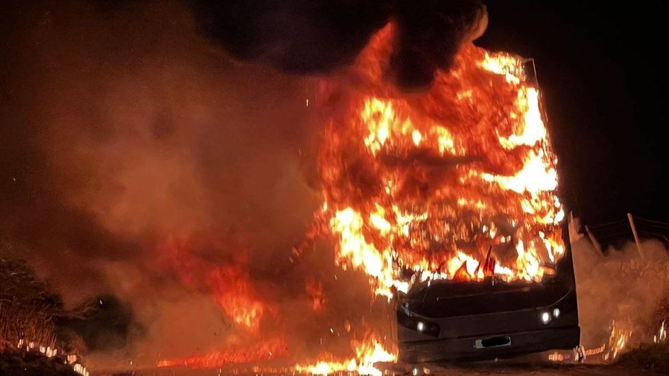 এদিন দেখা যায় কুণ্ডলী পাকিয়ে বের হতে থাকে ধোঁয়া । নিমিষে ঢেকে যায় কালো ধোঁয়ায়। দেখা যায় আগুনের শিখা । গভীর রাতে ১৯ নম্বর জাতীয় সড়কে চলমান বাসে ভয়াবহ অগ্নিকান্ড ঘিরে ছড়াল আতঙ্ক । দমকলের দু’টি ইঞ্জিনের কয়েক ঘন্টা প্রচেষ্টায় নিয়ন্ত্রণে আসে আগুন । তবে হতাহতের কোনও খবর পাওয়া যায়নি ।