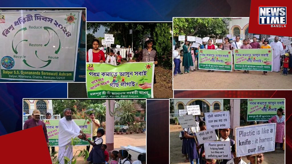 বিশ্ব ধরিত্রী দিবস উপলক্ষ্যে মানুষের সামনে তুলে ধরে দেওয়া হয় পৃথিবীকে বাঁচানোর বার্তা । সোমবার সকালে বাঁকুড়া ছাতনা দলপুর শ্রী শ্রী জ্ঞানানন্দ সরস্বতী আশ্রমের উদ্যোগে অনুষ্ঠিত হল এই বিশেষ দিনের উদযাপন । এদিন সকালে দলপুর আশ্রম থেকে খড়বনা পর্যন্ত কচিকাঁচাদের নিয়ে বিশেষ শোভাযাত্রা অনুষ্ঠিত হয় ।