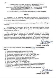 সমগ্র দিল্লি জুড়ে চিকিৎসক, পারামেডিক্যাল স্টাফ, স্বাস্থ্যসেবা কর্মীদের তরফ থেকে এই ধরণের বহু অভিযোগ পাওয়া যায়। বাড়ির মালিকরা ক্রমগত তাঁদের বাড়ি খালি করতে বাধ্য করছেন বলে জানান তাঁরা। এদিন সকালে দিল্লি রাজ্য্য স্বাস্থ্য ও পরিবার কল্যান বিভাগ থেকে একটি নির্দেশে বলা হয় যেহেতু বর্তমানে দিল্লি ও তার সংলগ্ন এলাকায় এপিডেমিক ডিজিজ অ্যাক্ট আইন জারি করা হয়েছে সেই ক্ষেত্রে এমন কাজ সরকারি কর্মীদের তাঁদের কাজে বাধা প্রদনের সমতূল্য। ফলে এমন ঘটনা ঘটলে দিল্লি পুলিশকে এই বাড়ির মালিকদর বিরুদ্ধে কড়া পদক্ষেপ নেওয়ার নির্দেশ দেওয়া হল