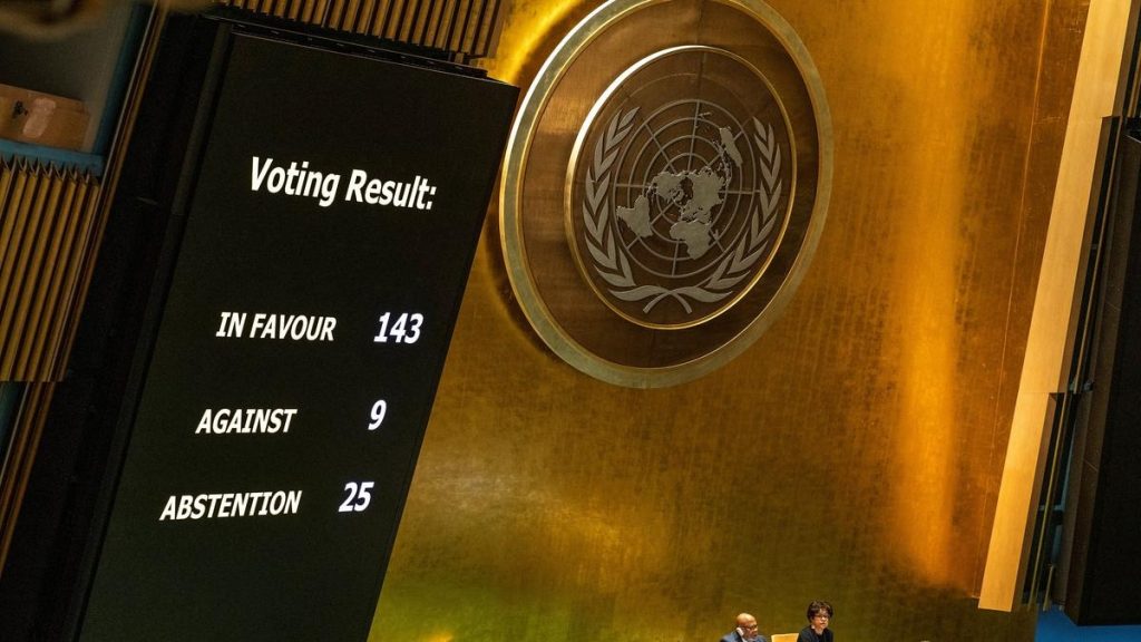 এই ভোটে ১৪৩টি দেশ প্যালেস্টাইনের অন্তর্ভুক্তিকরণের পক্ষে ভোট দেয় । প্যালেস্টাইনের পক্ষে ভোট দেয় ভারতও । তবে ২৫টি দেশ এই ভোটদানের প্রক্রিয়া থেকে নিজেদের বিরত রাখে । অপরদিকে প্রস্তাবটির বিপক্ষে ভোট দেয় ৯টি দেশ । শুক্রবারের এই রায়ের পর প্যালেস্টাইনকে রাষ্ট্রপুঞ্জের পূর্ণ সদস্য বলে গ্রহণ করা হবে ।