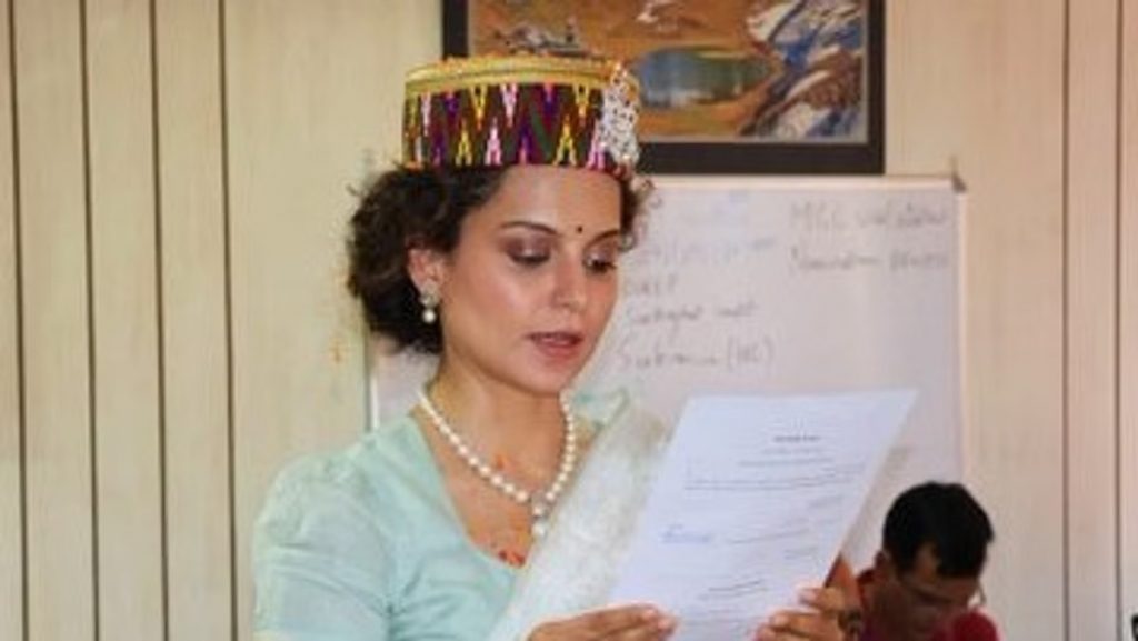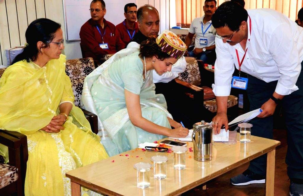 বলিউড অভিনেত্রী ও মাণ্ডির বিজেপি প্রার্থী কঙ্গনা রানাওয়াত মঙ্গলবার নিজের মনোনয়ন পেশ করলেন । এদিন তাঁর সঙ্গে ছিলেন তাঁর মা আশা রানাওয়াত ও দিদি রঙ্গোলী । তাঁর পরনে ছিল আকাশী রঙের শাড়ি ও মাথায় সুসজ্জিত ছিল হিমাচলী টুপি ।