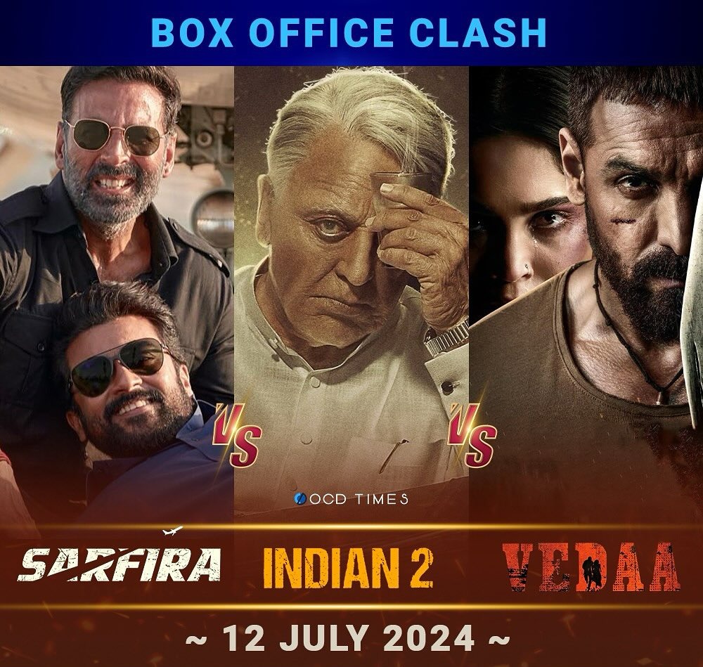 কমল হাসানের ইন্ডিয়ান টুয়ের সঙ্গেই জুলাই মাসের ১২ তারিখ মুক্তি পাচ্ছে অক্ষয় কুমারের সরফিরা । ছবিটি জনপ্রিয় তামিল ছবি ‘সুরারাই পট্টরু’-র রিমেক । ২০২০ সালে মুক্তি পেয়েছিল দক্ষিণি সুপারস্টার সূর্য অভিনিত ‘সুরারাই পট্টরু’ । ৬৮ তম জাতীয় চলচ্চিত্র পুরস্কার প্রদান অনুষ্ঠানে সেরা ছবি সব পাঁচটি বিভাগে সম্মানিত হয় সুধা কোঙ্গারা পরিচালিত এই ছবি । এমনকি ৯৩ তম অ্যাকাডেমি অ্যাওয়ার্ডসেও বিভিন্ন বিভাগে মনোনিত হয় এই ছবি ।