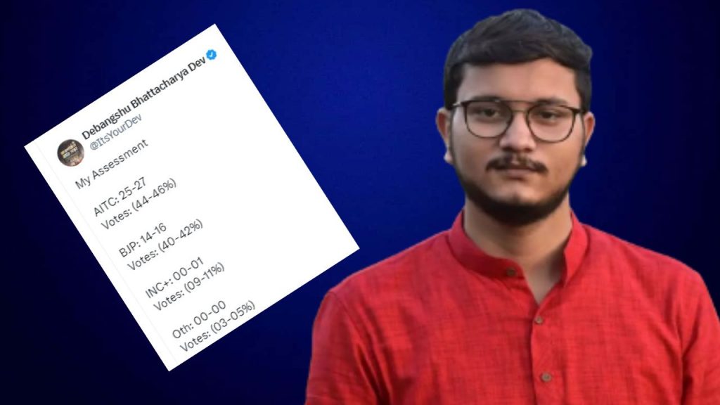 নিজের এক্স হ্যান্ডেলে দেবাংশু (Debangshu Bhattacharya) নিজের মতামত তুলে ধরেছেন। যেখানে দেখা যাচ্ছে, তাঁর দল অর্থাৎ তৃণমূল কংগ্রেস পেতে পারে ২৫-২৭ টি আসন। ভোট পাবে ৪৪-৪৬%। প্রধান বিরোধী দল বিজেপি পেতে পারে ১৪-১৬ টি আসন। বাংলার ৪২ আসনের মধ্যে কংগ্রেস পেতে পারে মাত্র ১ টি আসন। দেবাংশুর এই মূল্যায়ন কতটা সঠিক হয় তা জানতে আগামী ৪ জুন পর্যন্ত অপেক্ষা করতে হবে।