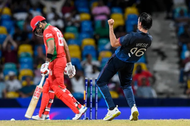 এদিন বার্বাডোজে ১০৯ রানের ম্যাচও গড়াল সুপার ওভারে । শুরুতে ব্যাট করে নামিবিয়ার সামনে ১১০ রানের লক্ষ্যমাত্রা দেয় ওমান । জবাবে ব্যাট হাতে ১০৯ রানে আটকে যায় নামিবিয়াও । ম্যাচ গড়ায় সুপার ওভারে । সেখানে শুরুতে ব্যাট করে নামিবিয়া তোলে ২১ রান । জবাবে বল হাতে ডেভিড উইজি ১০ রানের বিনিময়ে ১ উইকেট নিয়ে রুখে দেন ওমানকে ।