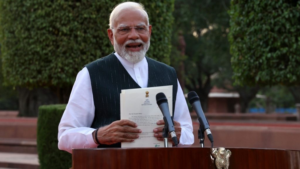 রবিবার প্রধানমন্ত্রী পদে শপথ নেবেন নরেন্দ্র মোদী । ২০২৪ সালে এই নিয়ে প্রধানমন্ত্রী পদে মোদীর তৃতীয়বার শপথ তাঁর । এদিন শপথ নেবে তৃতীয় NDA সরকার । রবিবার শপথ গ্রহণ শুরু হবে সন্ধে ৭.১৫ মিনিটে । পাশাপাশি শপথ নেবেন একাধিক শরিক দলের সাংসদরাও ।