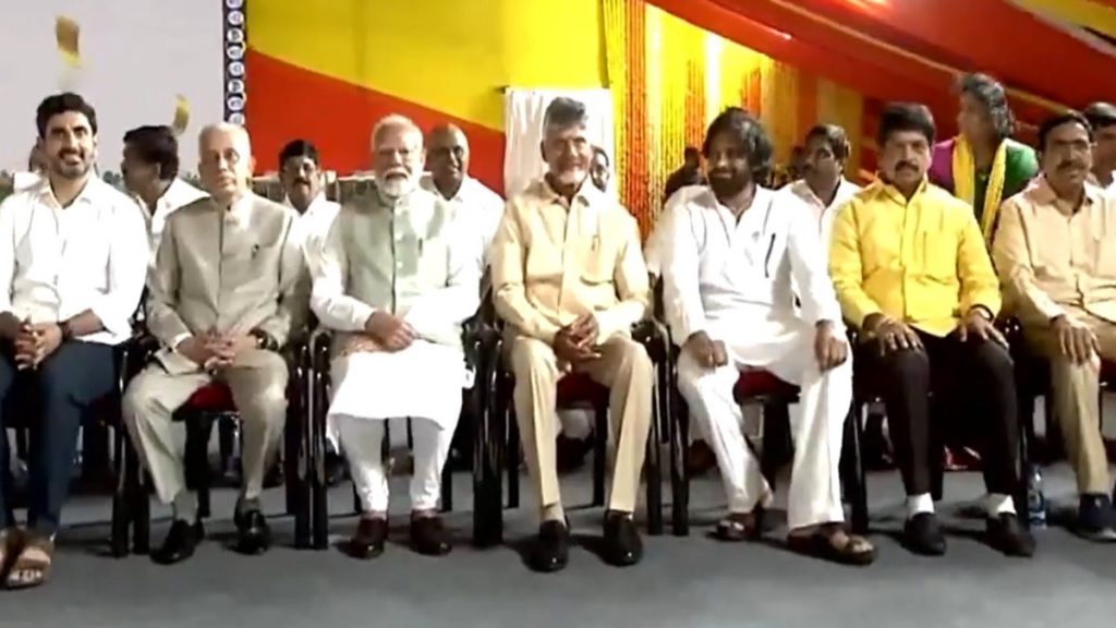 চন্দ্রবাবু নাইডুর শপথ অনুষ্ঠানে তারকার মেলা । মঙ্গলবার পবন কল্যাণ ও চিরঞ্জীবীকে হাত ধরে মঞ্চে আনলেন মোদী, সাক্ষাৎ মেগাস্টার রজনীকান্তের সঙ্গেও ।