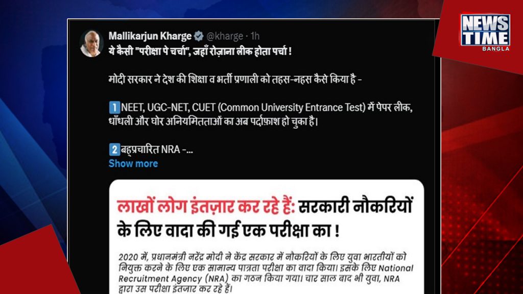 নেট বাতিল হতেই নিট বাতিলের দাবিতে সরব হলেন বিরোধীরা । মোদী সরকারের ঔদ্ধত্যের পরাজয় বলে এক্স হ্যান্ডেলে কটাক্ষ করলেন কংগ্রেসের সর্বভারতীয় সভাপতি মল্লিকার্জুন খাড়গে। তিনি আরও বলেন ‘পরীক্ষা নিয়ে চর্চা হয়, NEET নিয়ে চর্চা কবে হবে? NET বাতিল লক্ষ লক্ষ পরীক্ষার্থীদের জয়’ । তাঁর আরও সংযোজন, ‘শিক্ষামন্ত্রী বলেছিলেন কোনও প্রশ্নফাঁস হয়নি; বিহার, গুজরাত, হরিয়ানায় গ্রেফতারির পর শিক্ষা নিয়ে দুর্নীতির কথা স্বীকার করেন শিক্ষামন্ত্রী’ ।
