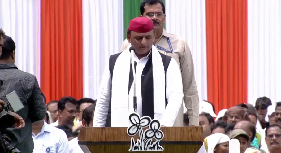 মুখ্যমন্ত্রীর আমন্ত্রণে সাড়া দিয়ে একুশে জুলাইয়ের সমাবেশে উপস্থিত ছিলেন উত্তরপ্রদেশের প্রাক্তন মুখ্যমন্ত্রী তথা সমাজবাদী পার্টির সভাপতি অখিলেশ যাদব। রবিবার মমতা বন্দ্যোপাধ্যায়ের সঙ্গেই সভায় যোগ দেন সপা সভাপতি। সাধারণ মানুষের উদ্দেশে বক্তব্য রাখতে গিয়ে বিজেপিকে কড়া ভাষায় আক্রমণ শানান সপা নেতা। কয়েকদিনের মধ্যেই কেন্দ্রের সরকারের পতন হবে, এই দাবিও করলেন তিনি।