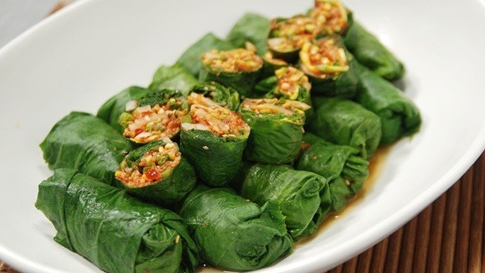 কুমড়ো পাতাগুলি ভালো করে ধুয়ে শুকিয়ে নিয়ে গ্যাসে হালকা আঁচে সেঁকে নিন। এরপর কুমড়ো পাতার মধ্যে চিকেন কিমার মিশ্রণ ঢেলে উপর থেকে গন্ধরাজ লেবুর পাতা দিয়ে সুতোর সাহায্যে ভালো করে আটকে নিতে হবে।