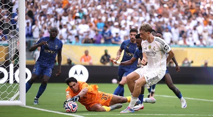 শেষ মুহূর্তে পেনাল্টি বাঁচিয়ে নায়ক তিনি। সেই সঙ্গে প্রথমে এগিয়ে গিয়েও শেষ রক্ষা করতে পারল না স্প্যানিশ ক্লাবটি। এম্ব্যাপাড়া ১ – ১ ড্র করল সৌদি ক্লাবের বিরুদ্ধে। ম্যাচের ৩৪ মিনিটে গোল করে রিয়ালকে এগিয়ে দেন গঞ্জালো গার্সিয়া। ৪১ মিনিটে পেনাল্টি থেকে গোল করে সমতা ফেরান আল হিলালের রুবেন নেভেস। এরপর আক্রমণ ও পাল্টা আক্রমনে জমে ওঠে ম্যাচ। ম্যাচের সংযুক্তি সময়ে রিয়ালের গ্রান গার্সিয়াকে বক্সে ফাউল করেন আল হিলালের মোহাম্মদ আলকাহতানি। ভার প্রযুক্তির সাহায্য নিয়ে রেফারি পেনাল্টির সিদ্ধান্ত দেন। ভালভার্দের শর্ট ঝাঁপিয়ে বাঁচিয়ে দেন সৌদি ক্লাবের গোলরক্ষক বুনু। রিয়ালের কোচ হিসেবে শুরুটা ভালো হল না জাবি আলোন্সোর। ড্র করলেও দল ভালো খেলেছে বলে ম্যাচ শেষে সাফাই দিয়েছে।