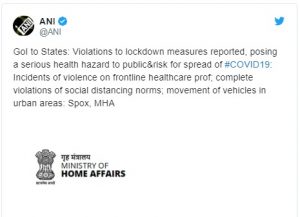 করোনা সংক্রমণের বিরুদ্ধে প্রতিরোধ গড়ে তুলতে আগামী ৩ মে পর্যন্ত দেশজুড়ে লকডাউন আরোপ করেছে কেন্দ্রীয় সরকার। লকডাউন যথাযথ পালনের উদ্দেশে একগুচ্ছ নির্দেশাবলী প্রকাশ করেছে কেন্দ্রীয় স্বরাষ্ট্র মন্ত্রক। তা সত্ত্বেও বাংলার বেশ কিছু অঞ্চলে নিষেধাজ্ঞা অমান্য করে সামাজিক দূরত্ব বিধির তোয়াক্কা না করে দোকান, বাজার, ব্যাঙ্ক ও ওষুধের দোকানে হচ্ছে বিস্তর জনসমাগম। একাধিক জায়গা থেকে স্বাস্থ্যকর্মী নিগ্রহের খবর পাওয়া যাচ্ছে। কেন্দ্রীয় নির্দেশিকা অমান্য করে লকডাউনে ছাড় দেওয়া হচ্ছে এবং যথেচ্ছ যান চলাচল রোখার কোনও ব্যবস্থা গ্রহণ করা হচ্ছে না বলে অভিযোগ উঠেছে বলে দাবি স্বরাষ্ট্র মন্ত্রকের।