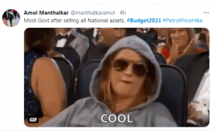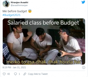 নিউজটাইম ওয়েবডেস্ক : ২০২০-২১ অর্থবর্ষের বাজেট প্রকাশ করেছেন অর্থমন্ত্রী নির্মলা সীতারমন। করোনা পরিস্থিতি মাথায় রেখে এবারের বাজেটে ঢেলে সাজানোর পরিকল্পনা করা হয়েছে স্বাস্থ্য ব্যাবস্থাকে। পাশাপাশি ৫ রাজ্যের বিধানসভা ভোটকে মাথায় রেখে এবারের বাজেটে বিশেষ করে নজর দেওয়া হয়েছে এই বাজেটের প্রতি। বেড়েছে ভোজ্য তেল, ডালের মতো নিত্যপ্রয়োজনীয় জিনিসের দামও। পেট্রোপন্যের ওপরও বেড়েছে সেস। সবমিলিয়ে এবারের বাজেট মোটেও অনুকুল নয় মধ্যবিত্তের জন্য। যা নিয়ে ইতিমধ্যেই ব্যঙ্গ বিদ্রুপে মেতেছেন নেটিজেনরা। দেখে নিন একনজরে