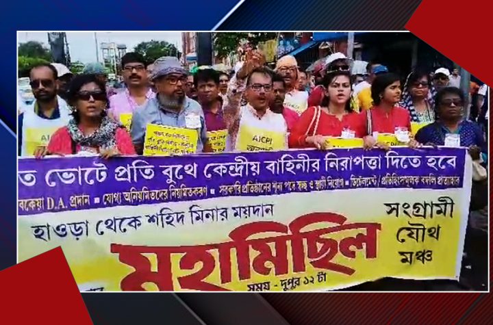 রবিবার সংগ্রামী যৌথ মঞ্চের পক্ষ থেকে আয়োজন করা হয় একটি মিছিলের । পঞ্চায়েত নির্বাচনকে মাথায় রেখে, ভোটে ব্যবহৃত সরকারি কর্মচারীদের...