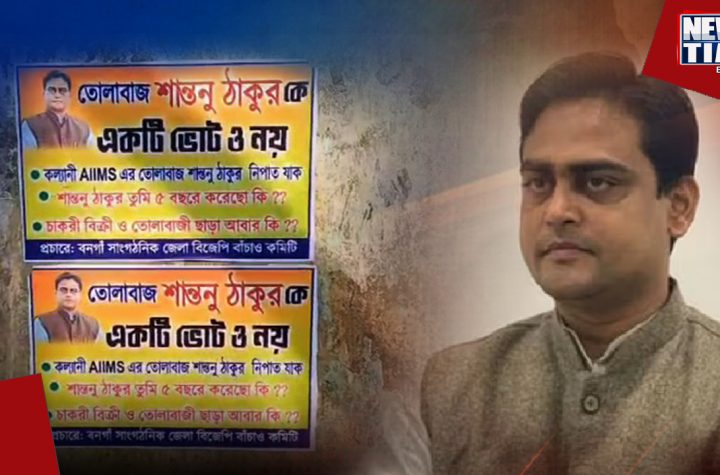 "তোলাবাজ শান্তনু ঠাকুরকে একটি ভোট নয়", এমনই কিছু পোস্টার পড়ল বনগাঁ স্টেশন সংলগ্ন এলাকায় । বুধবার সকালে বনগাঁ স্টেশন সংলগ্ন...