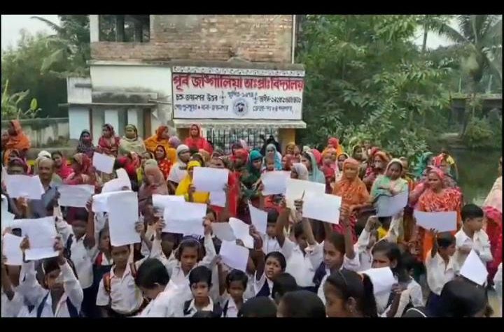 শিক্ষকের বদলি রুখতে বুধবার সকাল থেকে দক্ষিণ ২৪ পরগনার জয়নগরের জাঙ্গালিয়া পঞ্চায়েতের পূর্ব জাঙ্গালিয়া প্রাথমিক বিদ্যালয়ের সামনে বিক্ষোভ দেখালেন ছাত্র-ছাত্রীরা...