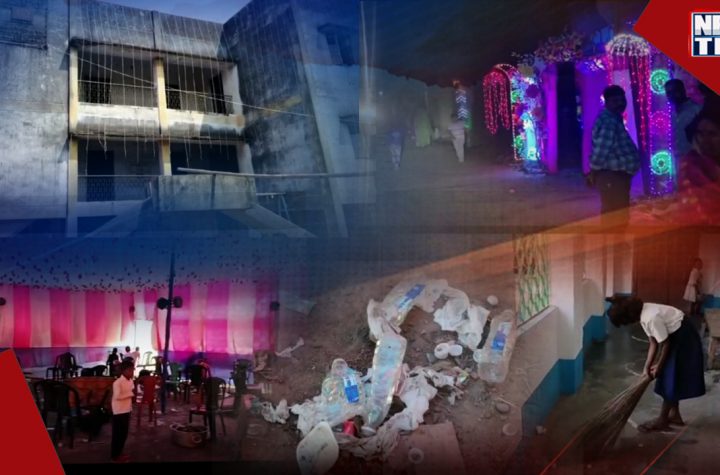 স্কুল নয়, এ যেন বিয়ে বাড়ির অনুষ্ঠানের লজ । মুর্শিদাবাদ জেলার সামশেরগঞ্জের জয়কৃষ্ণপুর -১ প্রাথমিক বিদ্যালয়ের স্কুলের ভেতরেই রবিবার ধুমধাম...